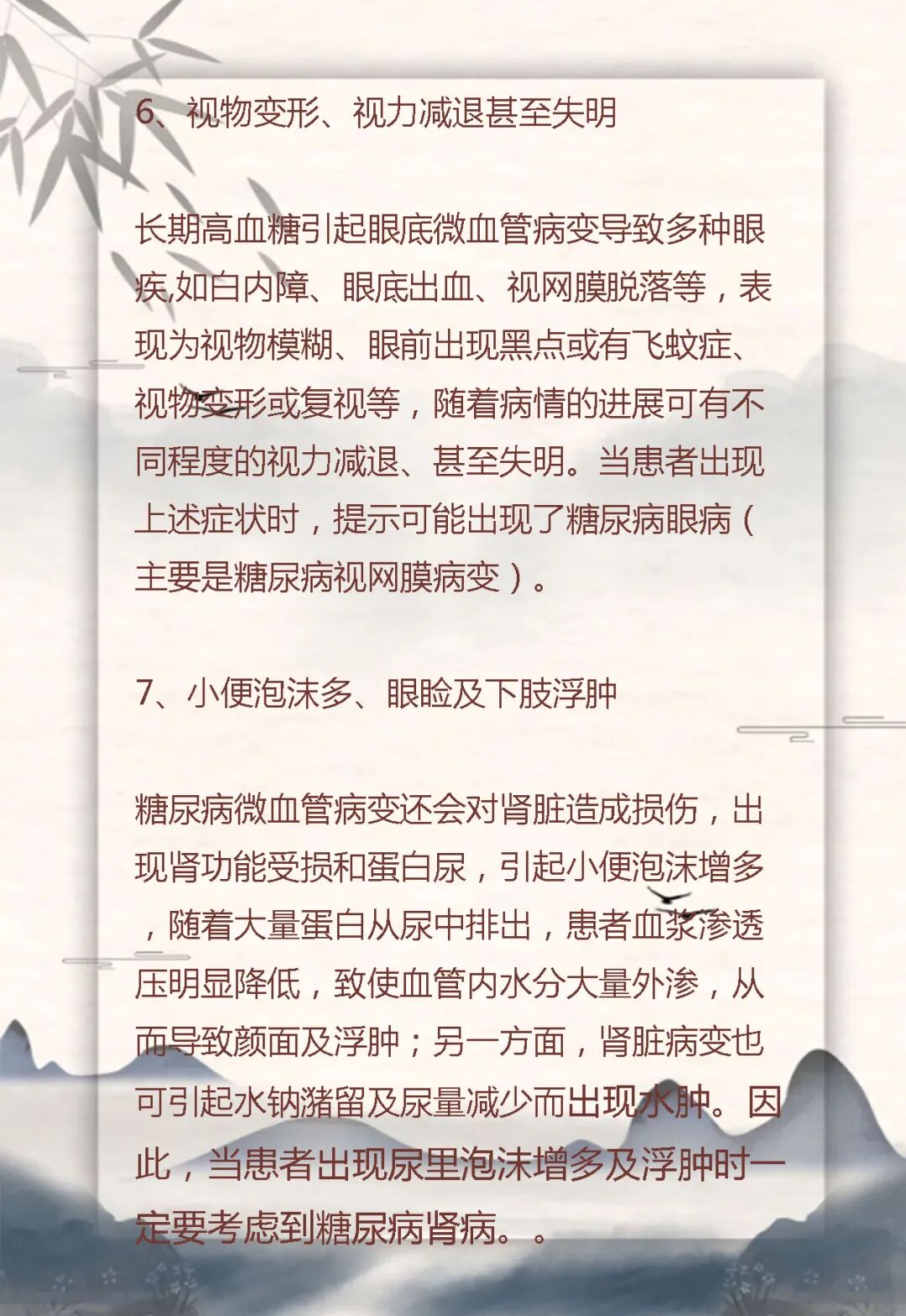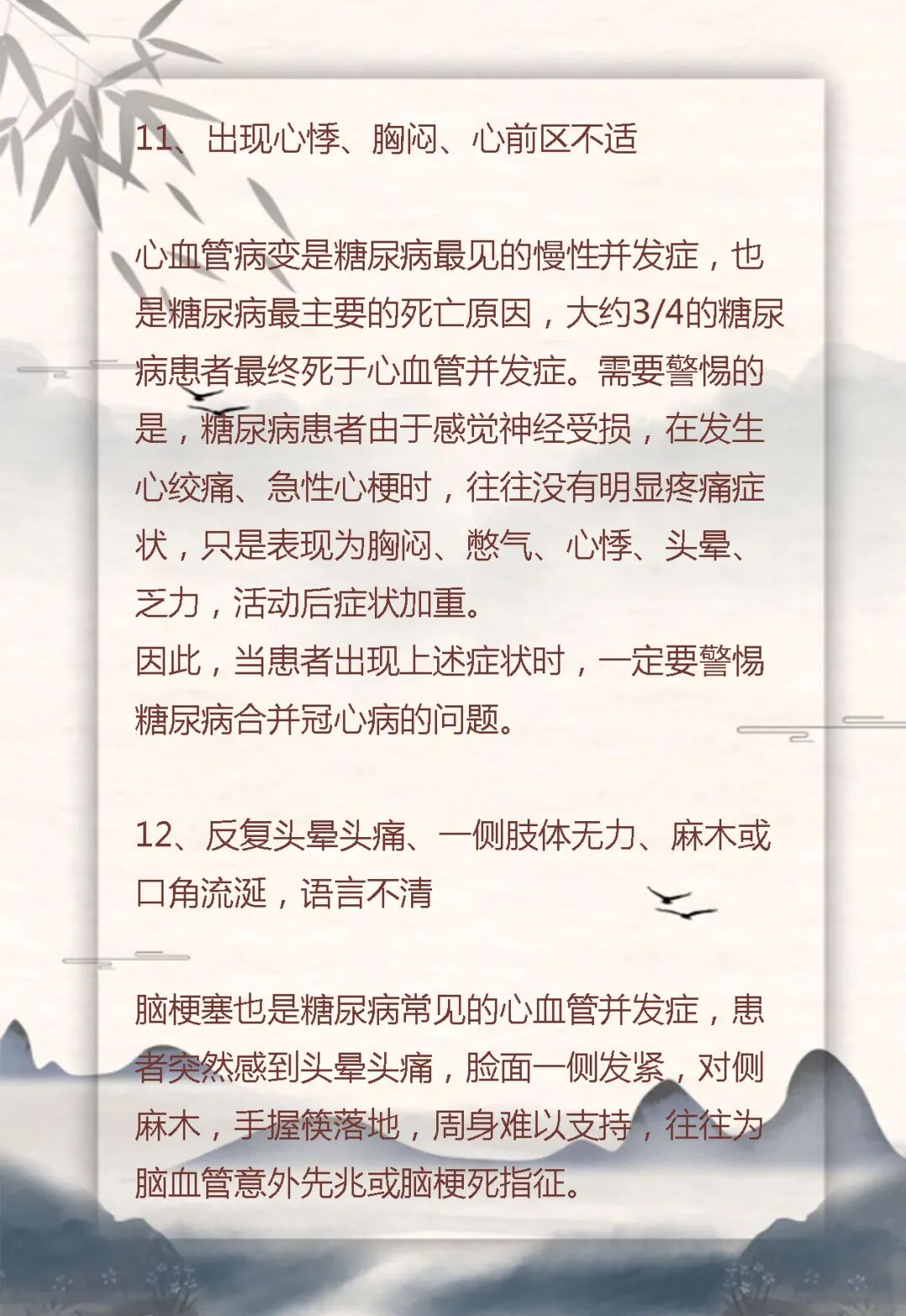 以上症状有可能是并发症发出的一些信号,也有可能只是身体也不适而引起的,但是对于糖尿病人来说,应该做好防范措施,最好是及时到医院进行相关方面的检查进一步确诊,早发现,早检测、早干预、早获益。